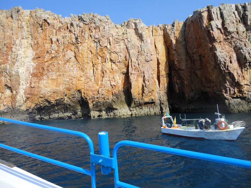 by boat driving half an hour from sagres marine harbour