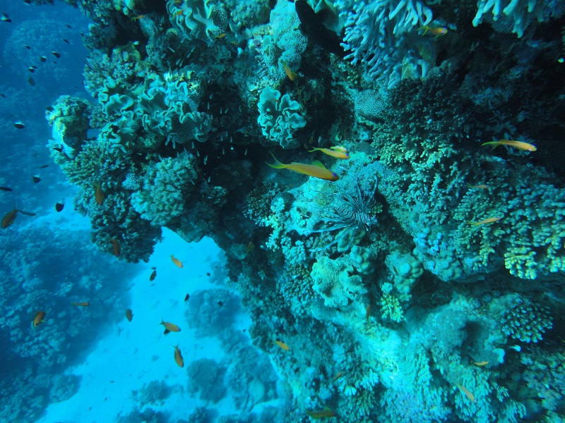 Fanadir is one of the longest reefs of Hurghada. It is situated north of Hilton Plaza Hotel and stretches in almost a straight line towards the north. Fanadir itself is divided into two dive sites Fanadir South and North. The northern part consists of 1 m high reefs wall, sandy plateau which is about 15 m wide by the mooring and narrows down reaching the depths of 40 m and over. Navigation of this dive site is very simple we begin our dive having the reef on the left hand side and heading, against the current, in the northern direction. Coming back with the current holding the reef on our right hand side. Initially we dive over a naked sandy plateau, but you could not be mistaking more When observing carefully one can possibly see many inhabitants here among which we can find the rarest samples of Red Sea flora. The edge of the plateau falls down rapidly to 30m and more but it does not offer much apart from some big Tunas or a small reef shark passing by from time to time. Some whip corals fill up the scene. You can often run into walking together Moth Fish, Stone Fish especially during the mating period they give quite a show on the sandy bottom marching together We can also see, in the sand on the edge of the plateau big Sand Rays or Feather tail Rays laying under a thin layer of the sand waiting for their victims. Gobi's together with Partner Shrimp fill the entire bottom digging holes. Octopuses are often visiting this reef as well.