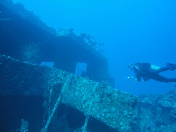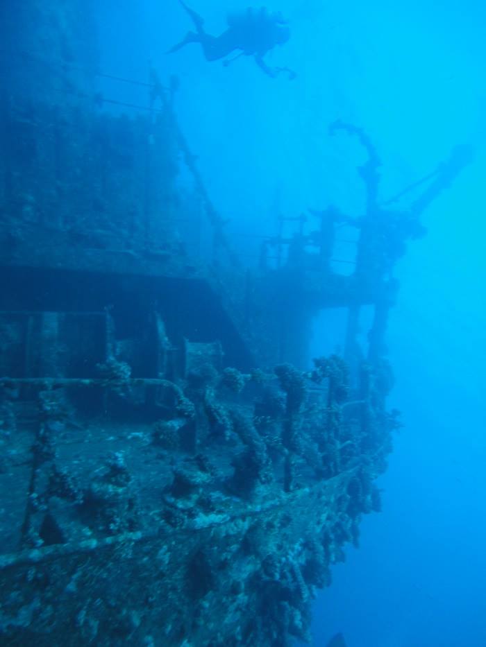 Lying some 31 miles from Sharm El Sheikh, the Thistlegorm is a popular site often visited by divers on day trips as well as liveaboard boats. Built in 1940, the Thistlegorm was a sizeable British transport ship. Early one morning in October 1941 while moored at Shaab Ali, she was struck by German bombers and sank. She was carrying a cargo of munitions, anti-tank mines, motorcycles, Bedford trucks, spare parts, tyres and medicines amongst other things for the British troops in North Africa. She lies at depths of between 16 and 33 metres and both the ship and her cargo are very well preserved, making her arguably the best wreck dive in the Red Sea. Not only you will you enjoy seeing a ship and cargo so amazingly intact, you will also see plenty of marine life in and around the vessel making the Thistlegorm, effectively, an artificial reef!