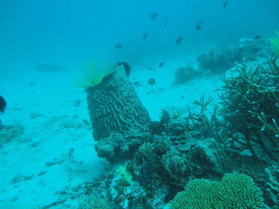 What you will see : Corals : Giant barrel sponge ? Tree coral ? Blue spotted stingray ? Mantis shrimp ? Reef octopus ? Unicorn fish ? Crocodile fish ? Yellow tail barracuda ? Spadefish fusillier ? Sea turtle ? Moray eel