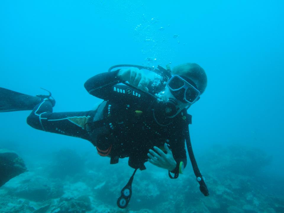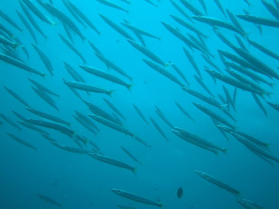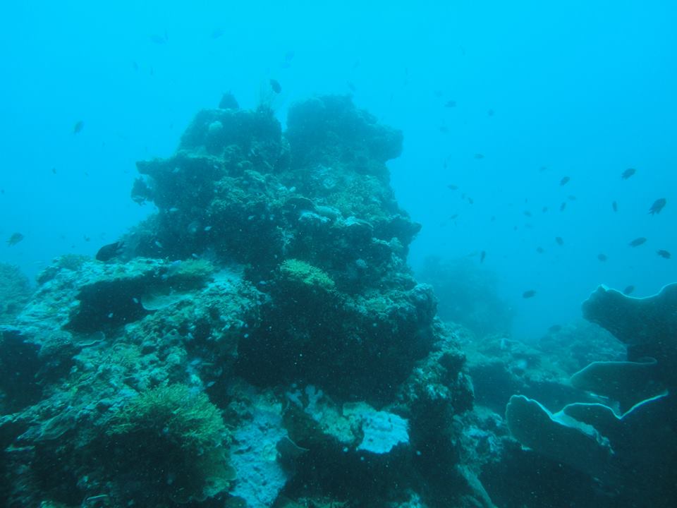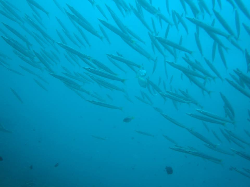The dive site is home to a multitude of different environments. A flat reef with huge table corals, beautiful rock formations and swim throughs covered in soft corals. These reefs are inhabited by a group of black tip reef sharks, a huge school of barracuda, sting rays, cuttlefish, unicorn fish and the graceful spade fish.