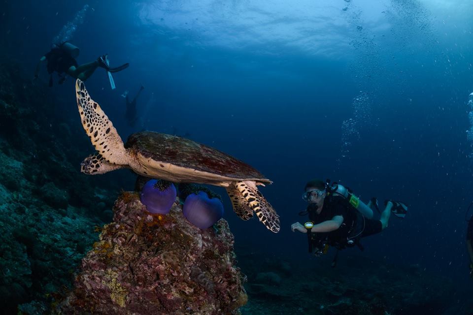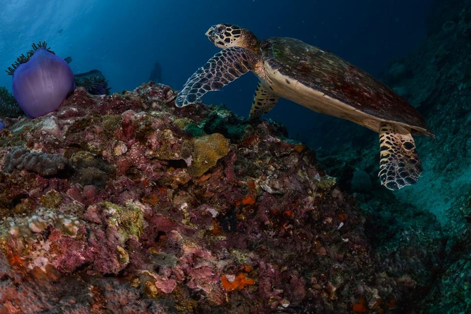 Hin Muang is a long rocky ridge just a few hundred metres from Hin Daeng with it's top at a depth of 8-9m and it's bottom at 60-70m. It is actually connected to Hin Daeng, but the depth prohibits a dive between the two. Currents can sweep quite strongly over the ridge, but you can always stay on the sheltered side. The surface of Hin Muang is covered in purple soft corals and anemones and swarms of tiny silversides are constantly under attack from predators such as jacks and trevallies. Leopard sharks are common and whale sharks are also seen here. Even if you don't see a "big fish", Hin Muang is a beautiful sight with it's colourful corals and steep walls.