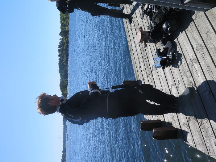 Good diving spot for all levels! A plateau at a depth of about 5-6 meters extends a good distance before it starts to drip off. So beginners can also enjoy here! You can choose to take a tube as a reference or compass direction. There is a lot of vegetation, as well as perch and perch. Visibility can often be very good here. Be careful on the slopes on the way down only! After about 20m swimming around 7-8 m, it goes down to 11m and from there it drops down very fast to 20-30 meters. So must be careful when diving, and take it slow, inflate drysuit and bcd with air, make stops with boyancy at every 5 meters down to 30 meters. Make sure to bring torch with you, cause at bigger depths, visibility is very poor and it becomes dark.