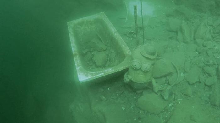 At a depth of 35 meters, you can find an old moped on a ledge. Down at 30 meters is a trailer. A little further down an old ladder. A little here and there you can find old toilet seats.