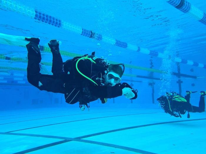 Training skills and boyancy trim dry suit