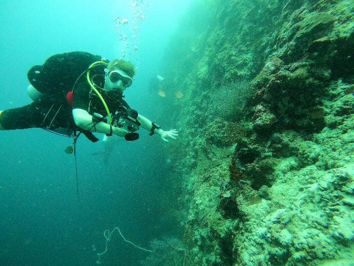 Contrary to its name, there are absolutely no dolphins to see on this dive site. However, you will see multicolored corals, caves, canyons, and, if you are really observant, many sleeping turtles and teeny tiny pygmy seahorses that measure only 3mm. This is also a super opportunity to see a real Divemaster in action!